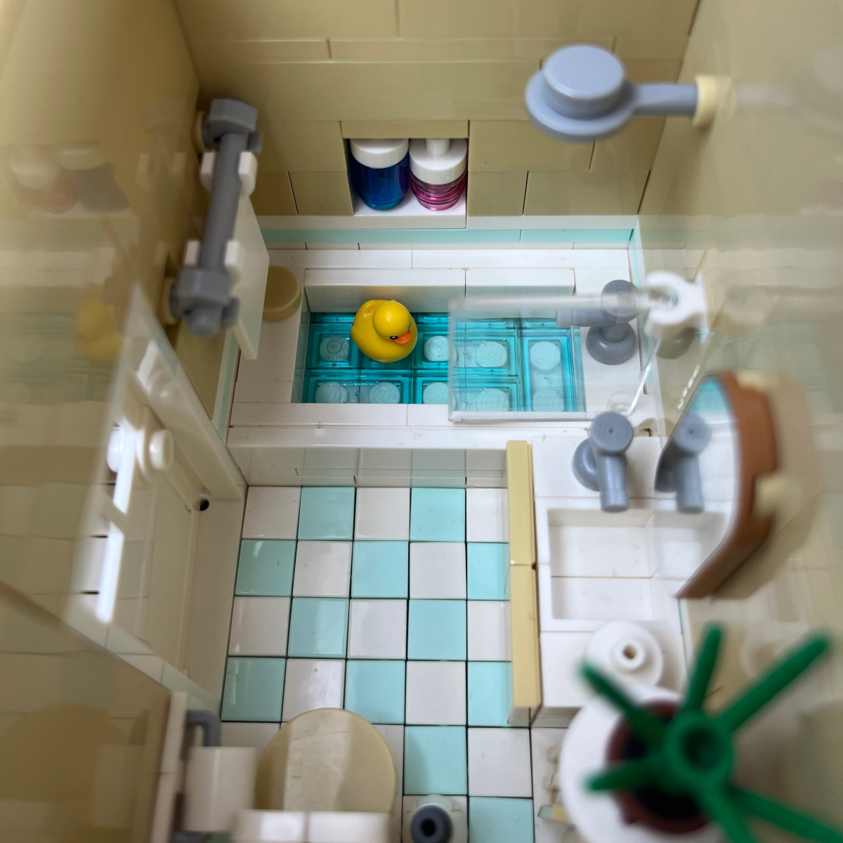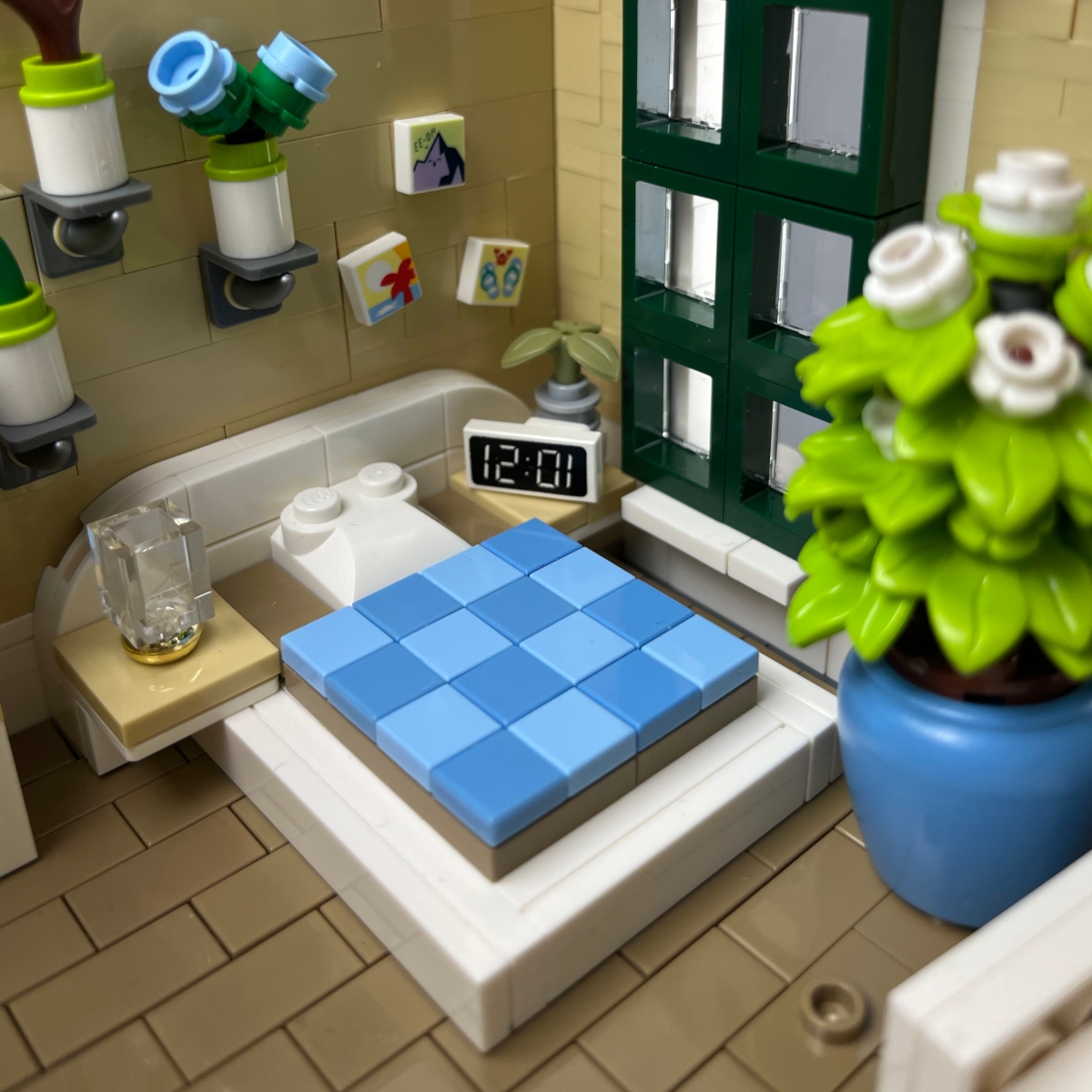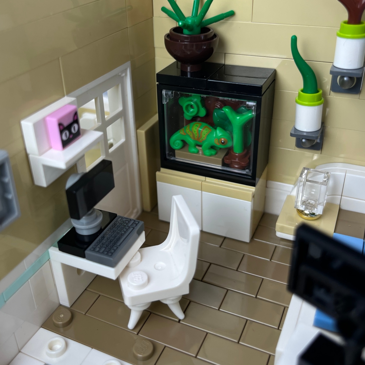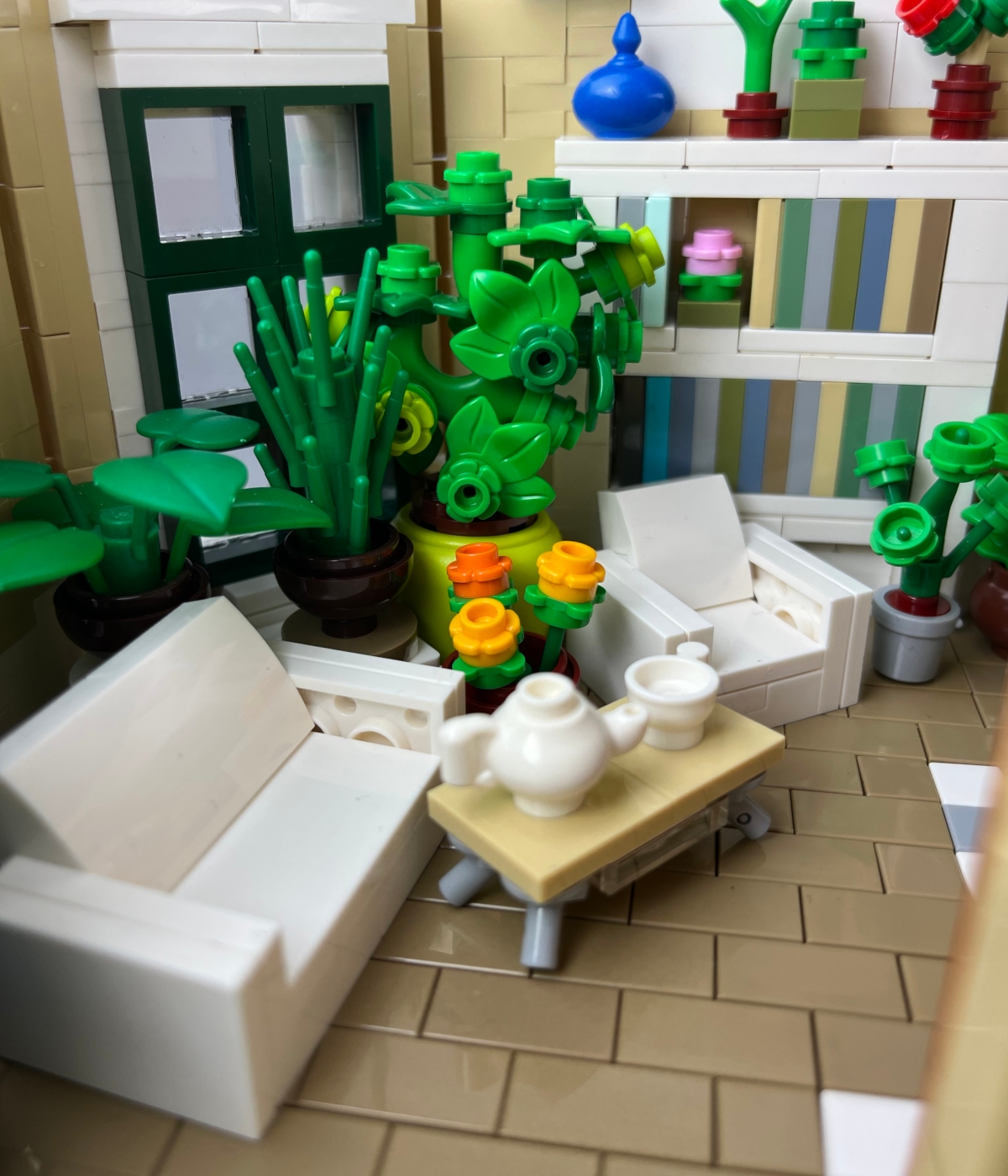 Pizzeria und Sportgeschäft01|2020 - 01|2025Modulares Gebäude. Das Haus basiert auf einem realen Gebäude in London (Redchurch Street 85). Begonnen habe ich damit im Januar 2020 und die Fassade war relativ schnell fertig. Allerdings hatte ich lange keine Idee für das Dach und die Inneneinrichtung. Im Januar 2021 habe ich die Pizzeria und den Sportladen eingerichtet, die erste Etage kam im Januar 2023 dazu. Im Januar 2025 habe ich schließlich die obere Etage und das Dach gebaut.